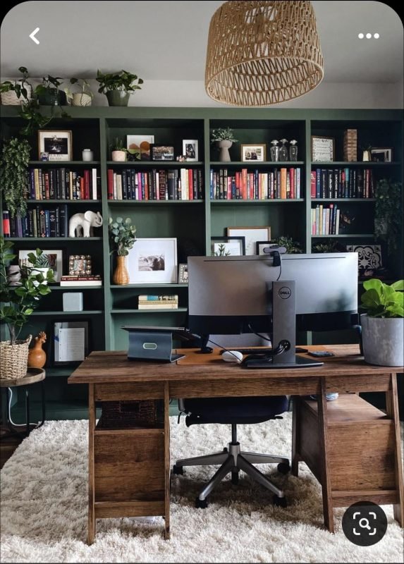 Adding plants to a 10×10 home office brightens the space. Greenery helps improve air quality and mood.