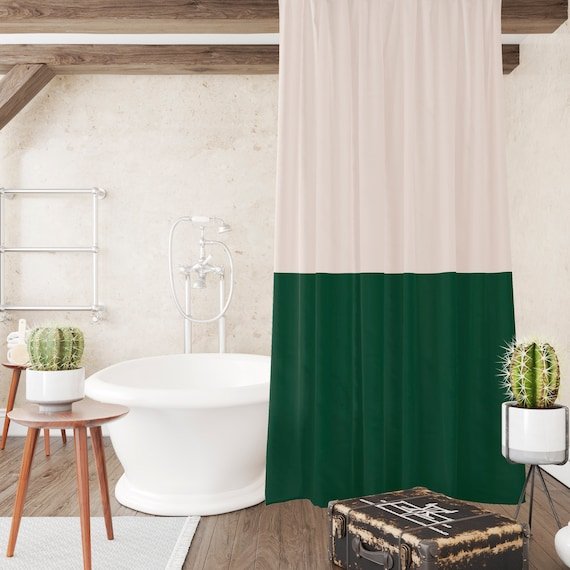 - Choose waterproof curtains with leafy or solid green patterns