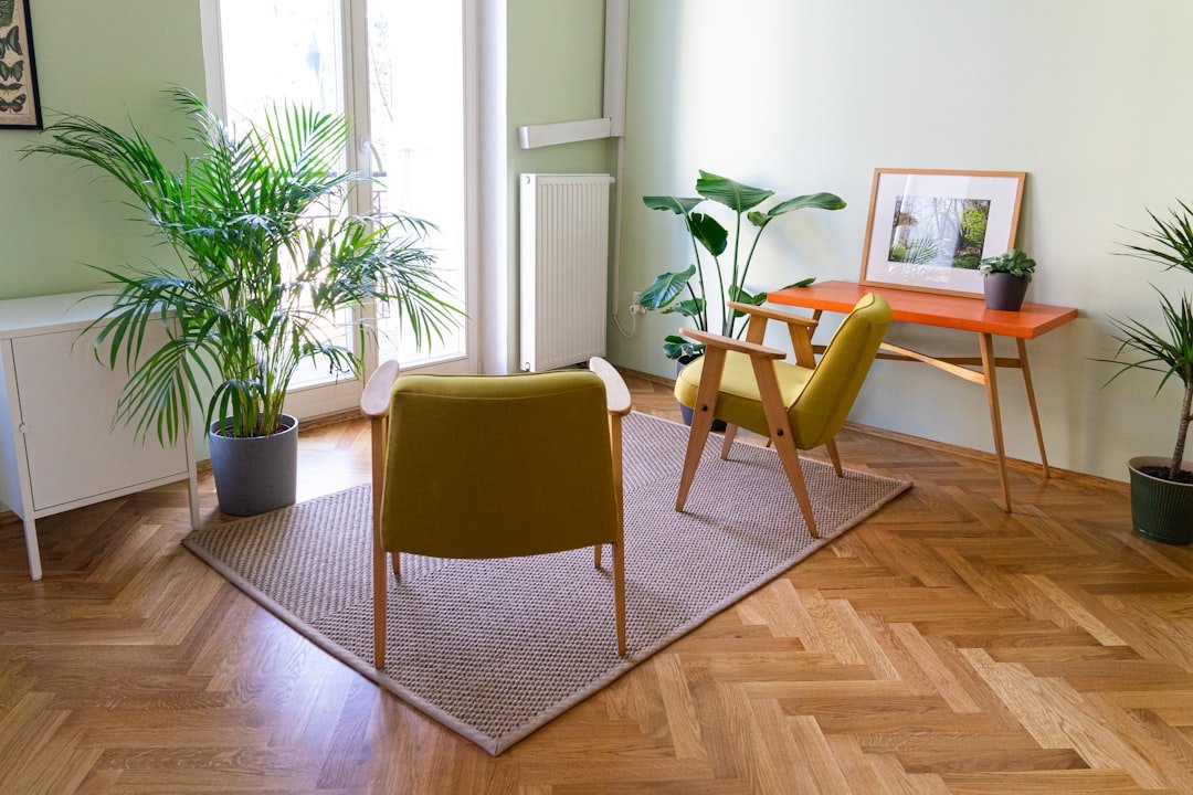 Plants bring life and freshness to a hallway seating area. They also improve air quality and mood.