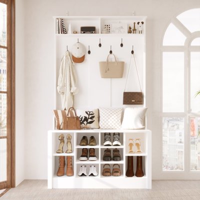 - Coat racks that become benches