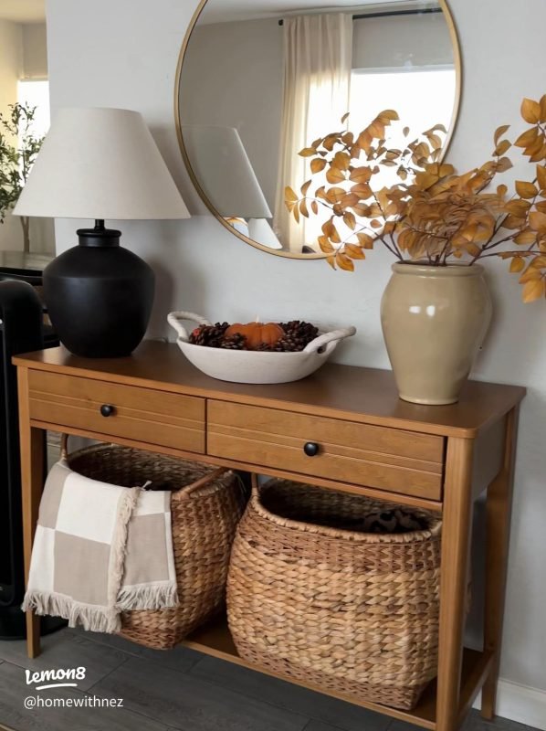 Storage helps keep things neat and easy to find. Choose console tables with built-in drawers or shelves to hide clutter. Baskets and boxes work well too.
