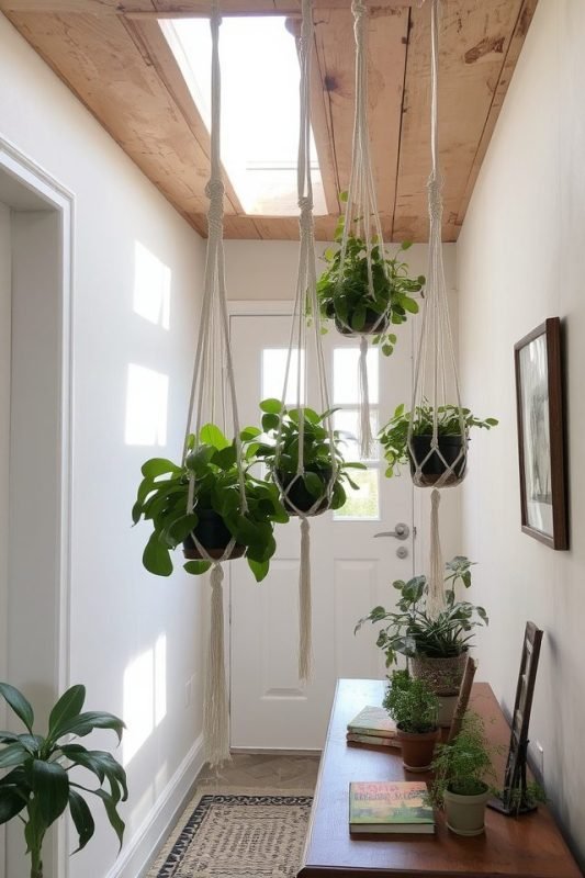 Small entryways need plants that do not take up much room. Look for slim or hanging plants.
